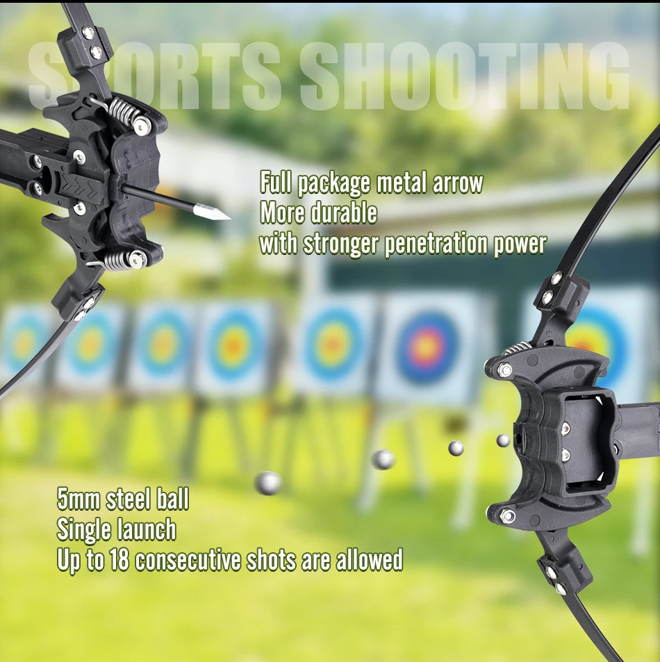 Experience powerful and versatile shooting with the 18-Shot Recurve Steel Bow, designed for both steel ball shooting and traditional archery. Built with a durable recurve structure, it delivers strong power, accuracy, and smooth performance. The dual-shooting design allows you to switch between steel balls and arrows, giving you flexible options for target practice and outdoor competitions. Sturdy, reliable, and easy to handle, this bow is a great choice for archery enthusiasts, outdoor sports, and shooting practice. 🏹🎯